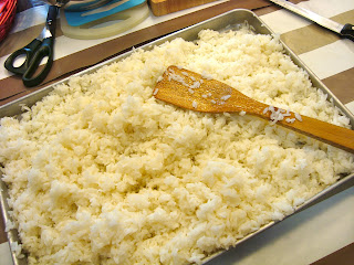 Ei-ei, ärge laske endid segadusse viia rõõmsatest nägudest fotodel - tegelikult oli tegu isegi kokakooli lastele piisavalt võõrapärase toiduga! Nii võõrapärasega, et kõik seda proovida lõpuks ei suutnudki! Sellest ei ole midagi - vähemalt saime teada sushi saamisloost ja valmistamisviisidest ning sellestki, kuidas seda restoranis või kodus viisakalt sööma peaks. Oli ka neid, kellele sushi väga maitses ning ka neid, kes ütlesid, et "algul oli päris õudne, aga pärast hakkas meeldima"! Nagu on see ilmselt paljude maitsetega meie elus. Igal juhul oli väga huvitav ja õpetlik tund!